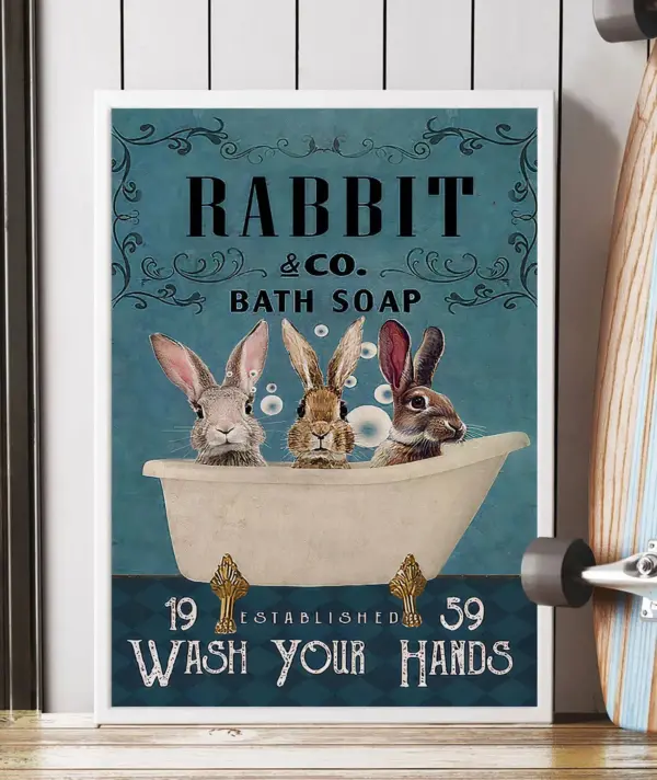 Rabbit Co Bath Soap Wash Your Hands Poster Rabbit Poster Rabbit Lover Gift Funny Bathroom Poster Rabbit Art Print Bathroom Wall Decor