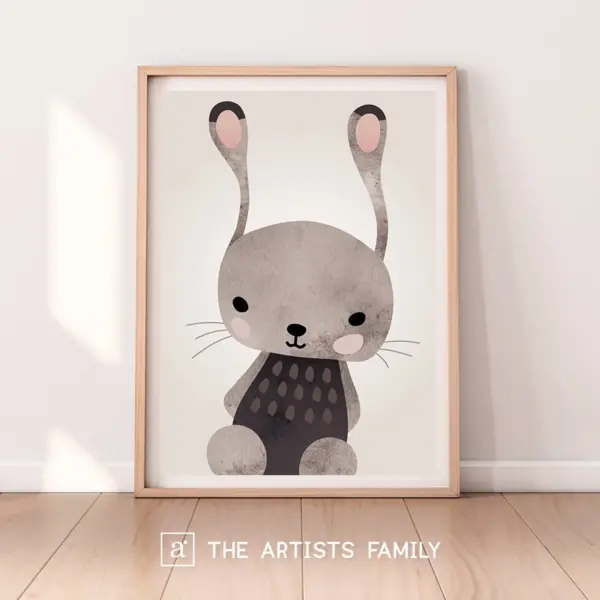 Rabbit Downloadable Prints Illustration Nursery Wall Art Decor Modern Woodland Cute Simple Animals Printable Girls Boys Kids Room Peekaboo