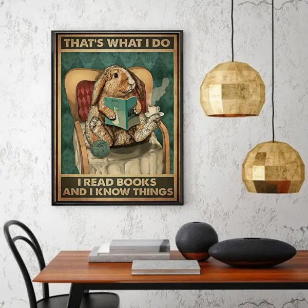 Rabbit I Read Books And I Know Things Poster Reading Books Poster Rabbit Vintage Book Poster Love Book Poster Reading Book Poster Ln Pt Framed Matte Canvas