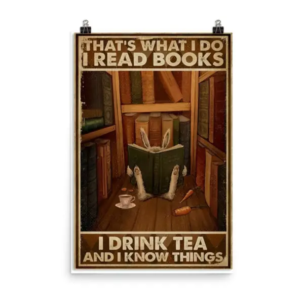 Rabbit Read Books Drink Tea And Know Things Poster Rabbit Tea Art Poster No Frame