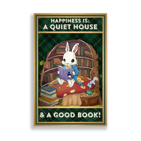 Rabbit Reading Book Poster Happiness Is A Quite House Wall Art Book Lovers Gift Nerdy Gift Book Geek Book Worm Day Of Happiness Gift