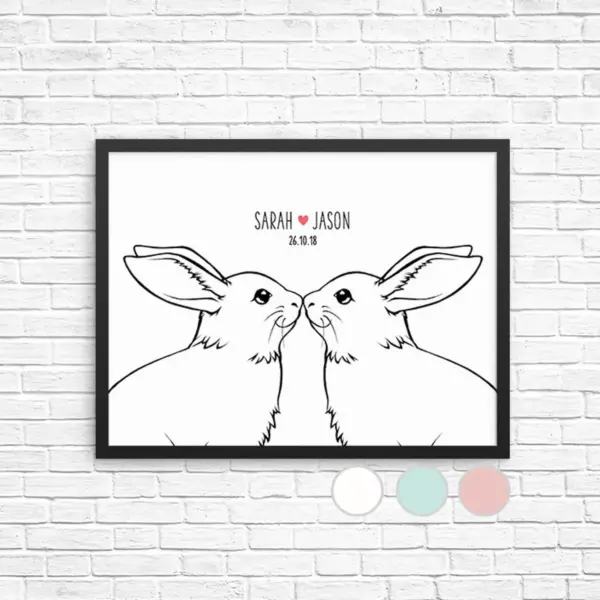 Rabbit Wall Art Custom Name Print Personalized Couple Wedding Decor Animal Sign Poster Newlywed Valentine Housewarming Gift