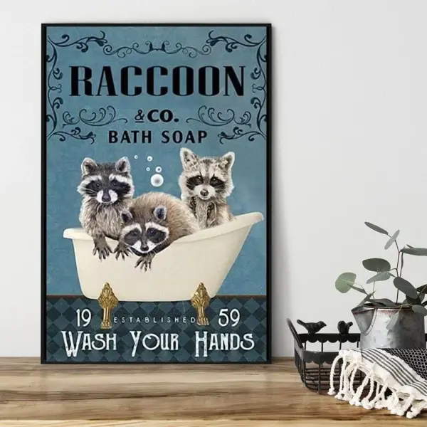 Raccoon Co Bath Soap Wash Your Hands Poster Canvas