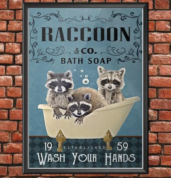 Raccoon Company Bath Soap Poster Framed Matte Canvas