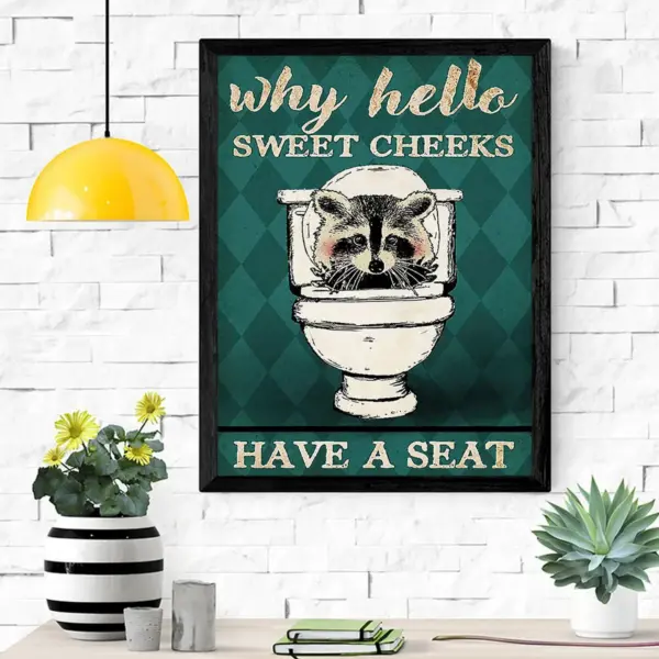 Raccoon Why Hello Sweet Cheeks Have A Seat Bathroom Decor Poster Cutie Raccoon Raccoon Lover Animal Lover Vertical Poster No Framed
