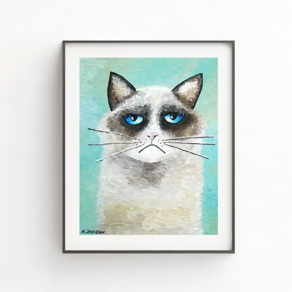 Ragdoll Cat Art Print Cat Poster Cat Print Cat Portrait Whimsical Cat Wall Art Turquoise Art Cat Decor Pet Lover Gift