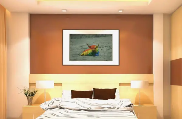 Rainbow Colored Scottish Highland Cow Poster Gift Without Frame Unique Hairy Shaggy Cow Addict Fan Lover Livingroom Wall Art Home Decor