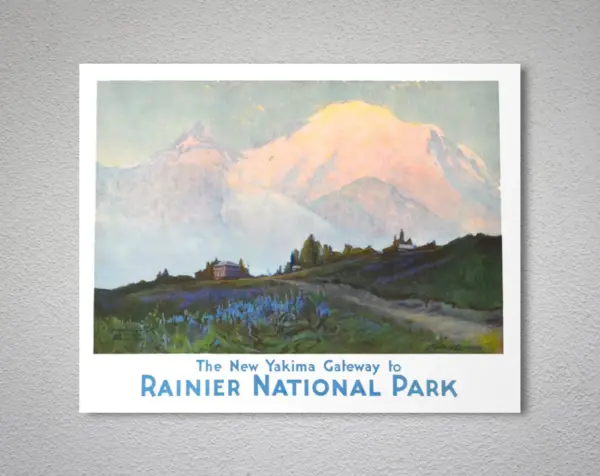 Rainier National Park The New Yakima Gateway Vintage Travel Poster Poster Paper Sticker Or Canvas Print Gift Idea