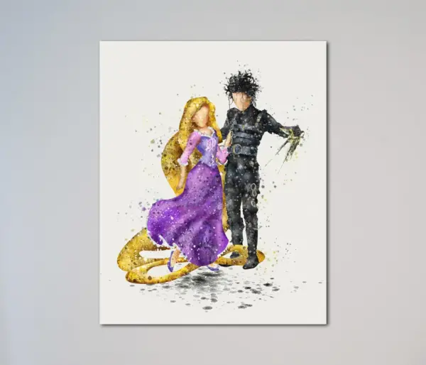 Rapunzel And Edward Scissorhands Poster Watercolor Art Print Gift For Her Gift For Him Girlfriend Gift