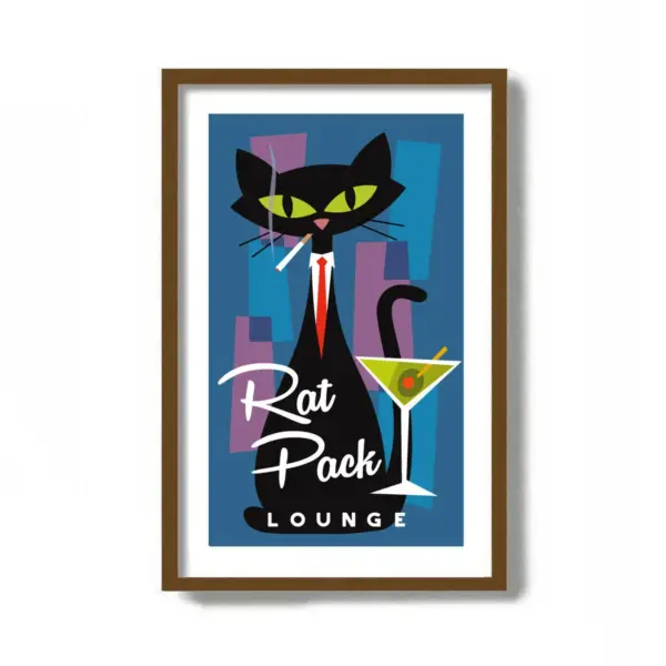 Rat Pack Decor Mid Century Modern Cat Art Cat Poster Black Cat Art Print Martini Art Cocktail Poster Bartender Gifts Cat Lover Gift