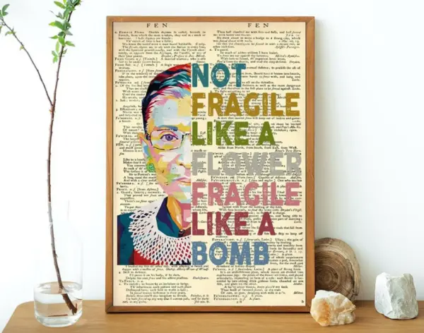 Rbg Not Fragile Like A Flower Fragile Like A Bomb Ruth Bader Ginsburg Quote Home Decor Vertical Poster No Framed