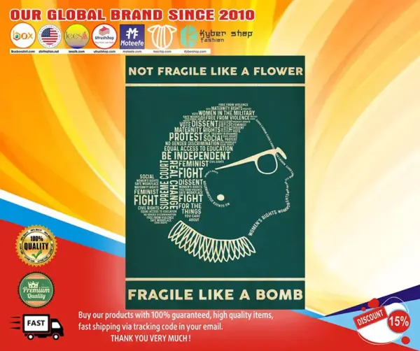 Rbg Ruth Bader Not Fragile Like A Flower Fragile Like A Bomb Poster