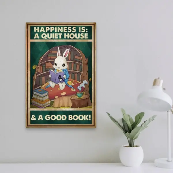 Read Book Poster Happiness Is A Quiet House And A Good Book Bunny Read Book Prints Book Lover Gift Bookworm Gifts Book Girl Gift