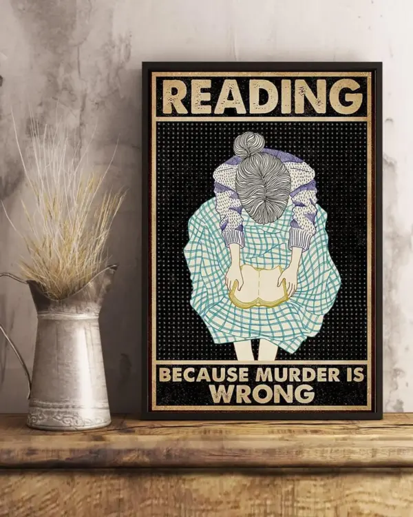 Reading Because Murder Is Wrong Vertical Poster Girl Love Books Vintage Wall Art Book Lover Poster No Frame
