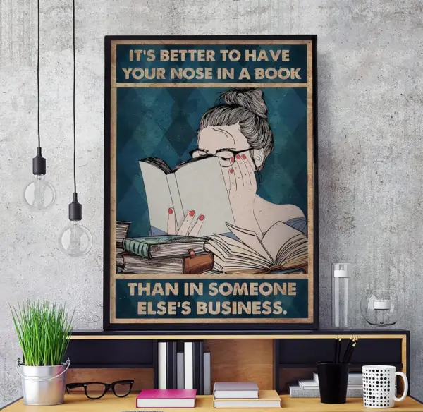 Reading Book Poster It S Better To Have Your Nose In A Book Book Art Print Love Reading Poster Book Lover Gift Girl Book Canvas Print