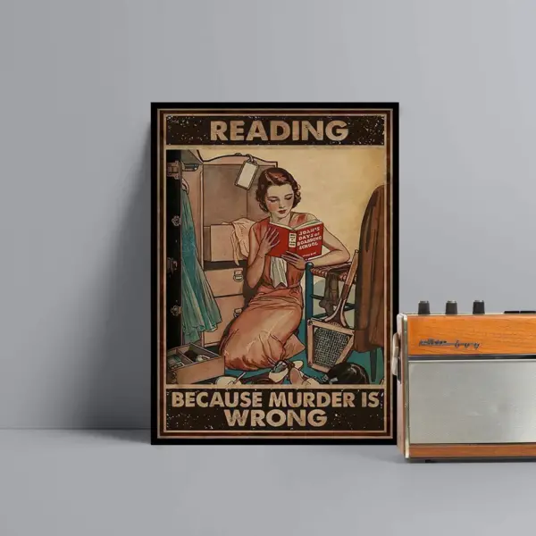 Reading Books Poster Reading Because Murder Is Wrong Print Book Lover Print Reading Lover Art Vintage Posters Retro Girl Pot Head Art