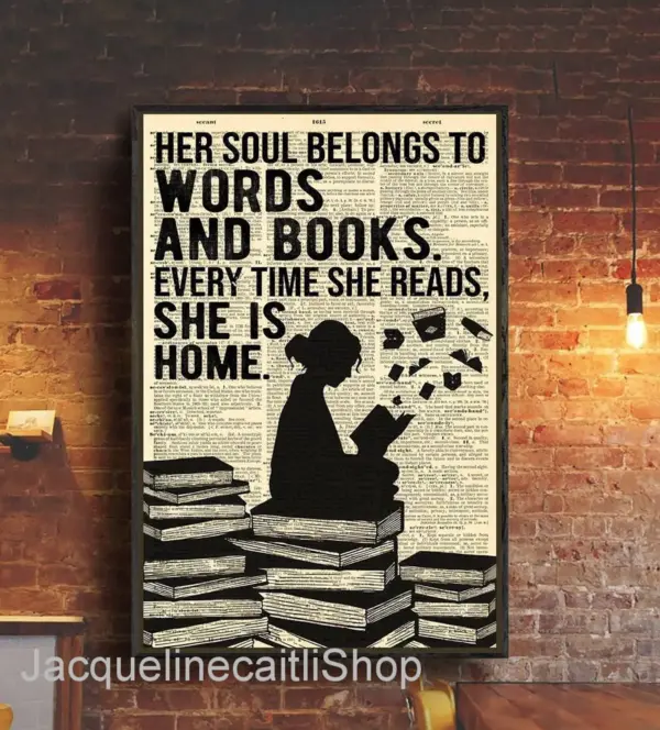Reading Canvas Her Soul Belongs To Words And Books Canvas Book Vintage Canvas Farmhouse Wall Art Home Sign Book Lover Gift Best Gift