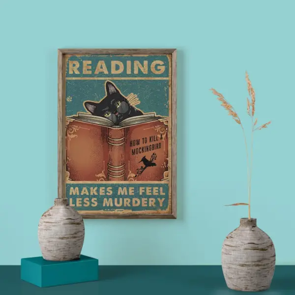 Reading Makes Me Feel Less Murdery Poster Black Cat Print Cat Print Cat Lover Gift Black Cat Art Cat Art Cat Wall Art Cat Art Print