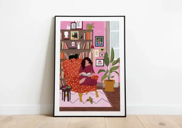 Reading Nook And Print Autumn Poster Pink Poster Book Lover Poster Cat Print Cozy Fall Poster Plants Poster