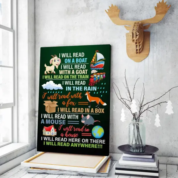 Reading Poster Canvas I Will Read On A Boat I Will Read With A Goat I Will Read Here Or There I Will Read Everywhere Nursery Decor