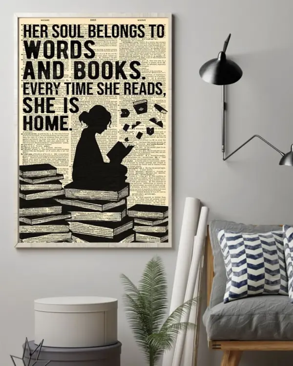 Reading Poster Her Soul Belongs To Words And Books Poster Book Vintage Poster Farmhouse Wall Art Home Sign Book Lover Gift Best Gift