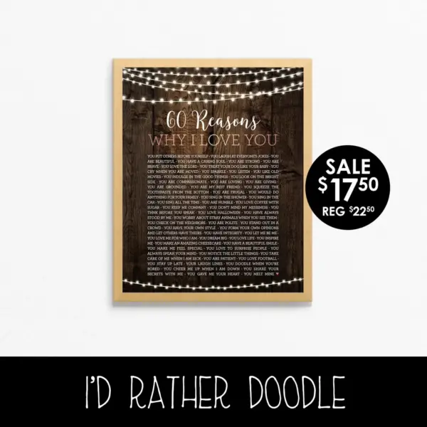 Reasons I Love You Reasons We Love You 60 Reasons Wood And Lights Customized Printable Poster Birthday Anniversary