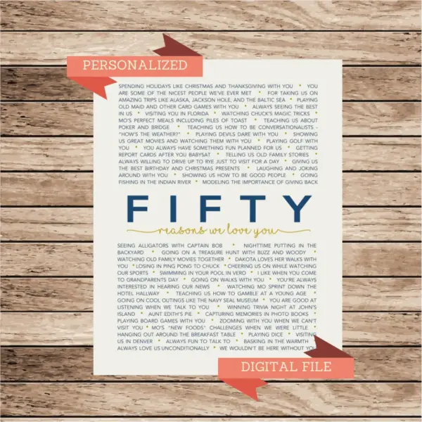 Reasons I Love You Things We Love You Custom Printable Poster Dad Father Uncle Grandpa Group Gift