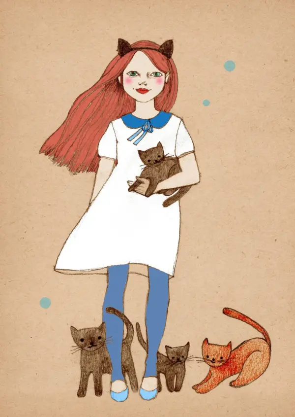 Red Cat Girl Fine Art Print Cat Art Original Print Pet Lovers Simple Artwork Illustration Cat Poster Cute Kitty Art
