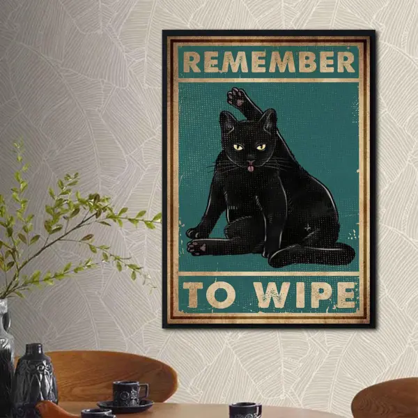 Remember To Wipe Poster Black Cat Bathroom Poster Bathroom Wall Art Cat Bathroom Signs Black Cat Bathroom Print Funny Cat Bathroom Decor