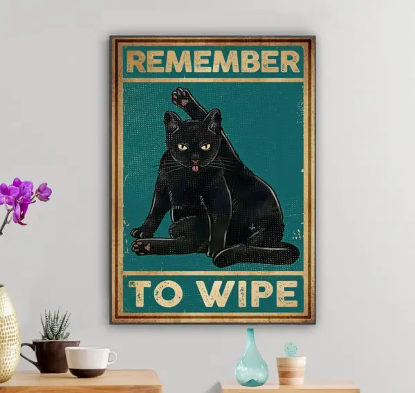 Remember To Wipe Poster Cat Licking Wall Decor Poster Black Cat Poster Funny Cat Poster Funny Bathroom Restroom Decor