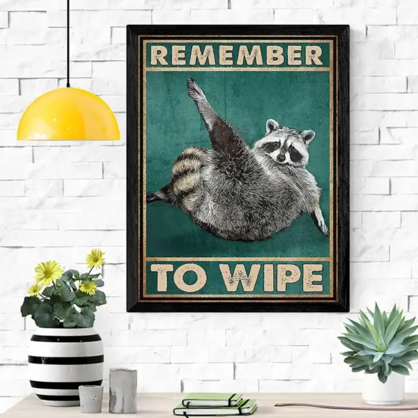 Remember To Wipe Poster Funny Raccoon Poster Raccoon Original Art Print Nursery Decor Animals Lover Home Decor Signs For Home