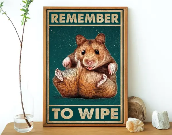 Remember To Wipe Poster Hamster Poster Cutie Hamster Poster Hamster Lover Funny Toilet Decor Hamster Wipe Vertical Poster No Framed
