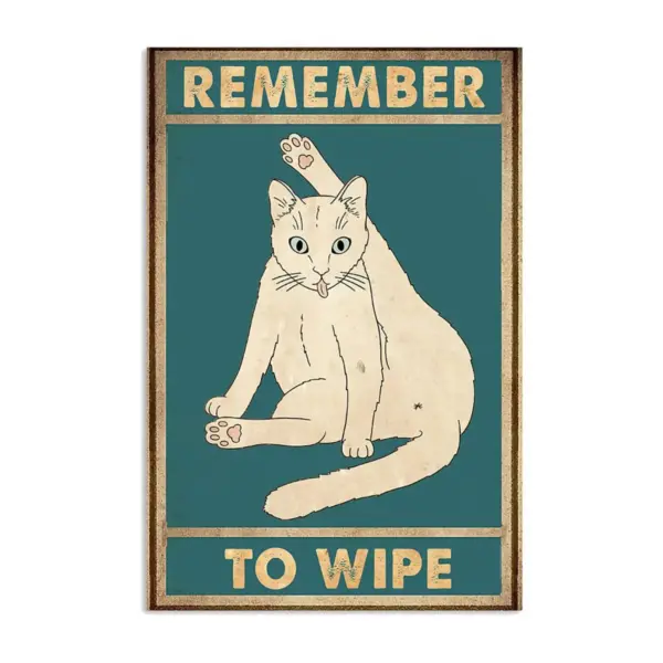 Remember To Wipe Poster White Cat Lover Bathroom Funny Bathroom Wall Art Cat Licking Wall Decor Poster