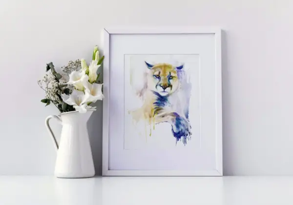Resting Cougar Watercolor Painting Instant Printable Poster Mountain Lion Wall Art Wildlife Big Cat Art Gift For Cougar Lover