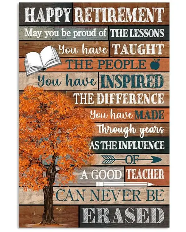 Retired Teacher Happy Retirement Canvas Poster Wall Art Birthday Christmas Housewarming Gift Ready To Hang Home Decor