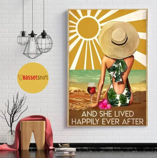Retro Beach And She Lived Happily Ever Poster Canvas