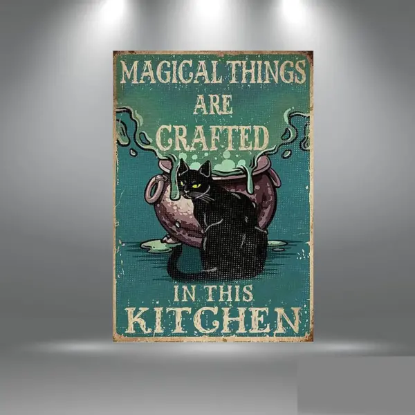 Retro Black Cat Magical Things Crafted In Kitchen Poster