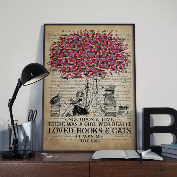 Retro Book Lover Poster Once Upon A Time There Was A Girl Who Really Loved Books Cats Vintage Book Girl Poster Books Cats Lover Poster