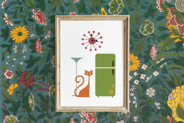 Retro Cat Print Mid Century Modern Art Kitchen Printable Cat Lover Gift Pantry Sign Atomic Cat Space Age Danish Modern Scandinavian
