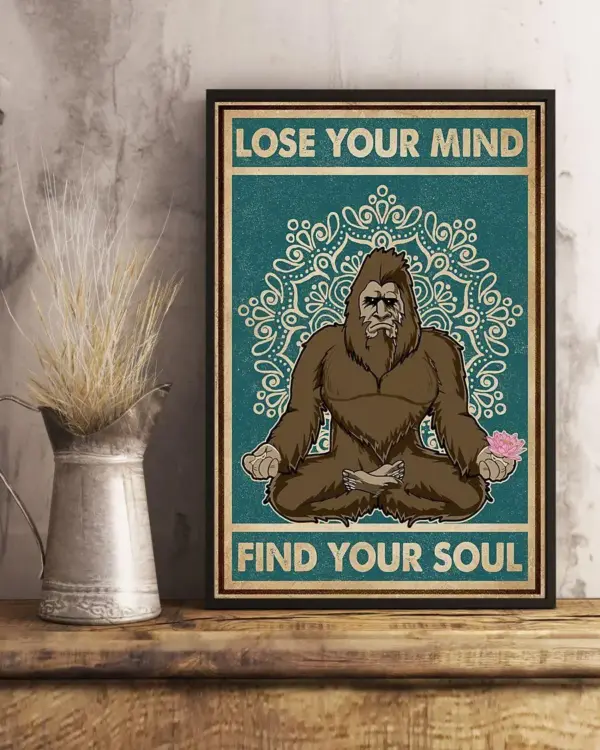 Retro Find Your Soul Bigfoot Yoga Vertical Poster Yoga Lover Poster Bigfoot Poster Vintage Hippie Yoga Poster Framed Matte Canvas