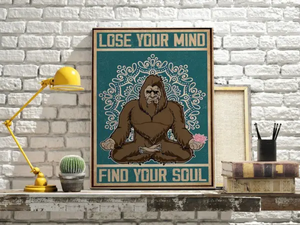 Retro Find Your Soul Bigfoot Yoga Vertical Poster Yoga Lovers Poster Vintage Hippie Poster Yoga Lovers Print Art