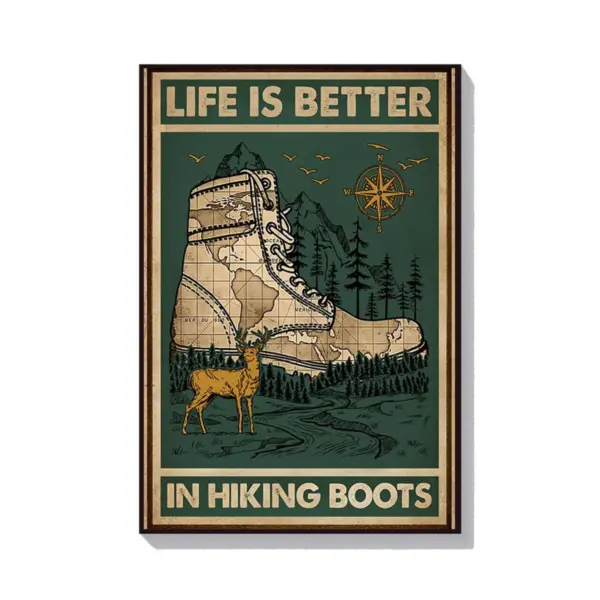 Retro Green Hiking Boots Life Is Better Poster