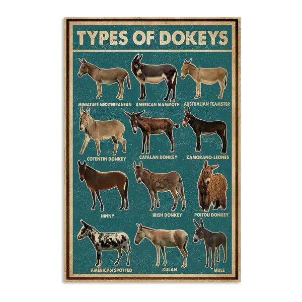 Retro Green Types Of Donkeys Vertical Poster Donkey Poster Love Donkey Poster Donkey Lovers Gift Housewarming Gift