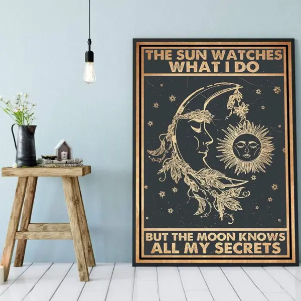 Retro Poster Art The Sun Watches What I Do But The Moon Knows All My Secrets Sun And Moon Wall Art Vintage Yoga