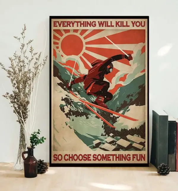 Retro Sunset Skiing Everything Will Kill You So Choose Something Fun Poster