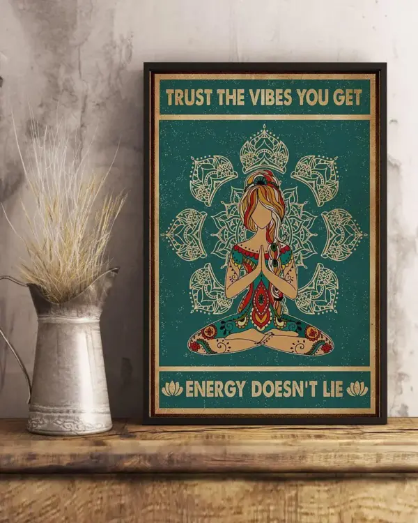 Retro Teal Trust The Vibes Yoga And Hippie Vertical Poster Yoga Lover Poster Vintage Hippie Yoga Poster Framed Matte Canvas