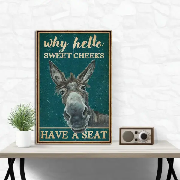 Retro Teal Why Hello Sweet Cheeks Donkey Vertical Poster Love Donkey Poster Bathroom Poster Poster Art Signs For Home Wall Decoration