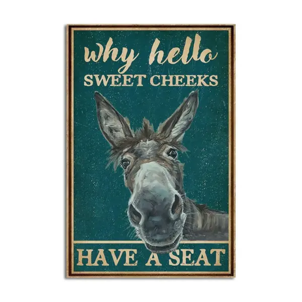Retro Teal Why Hello Sweet Cheeks Donkey Vertical Poster Love Donkey Poster Bathroom Poster