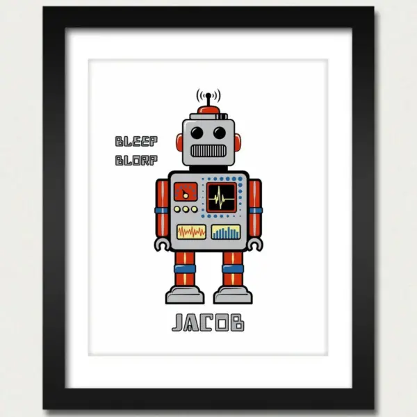 Robot Print Robot Poster Retro Robot Personalized Name Kids Room Or Office 8 Art Print Or Poster