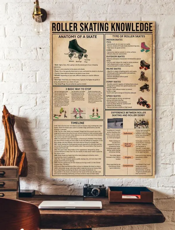 Roller Skating Knowledge Poster N Framed Matte Canvas